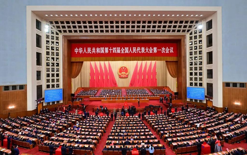3月11日,十四届全国人大一次会议在北京人民大会堂举行第四次全体会议。新华社记者 李鑫 摄