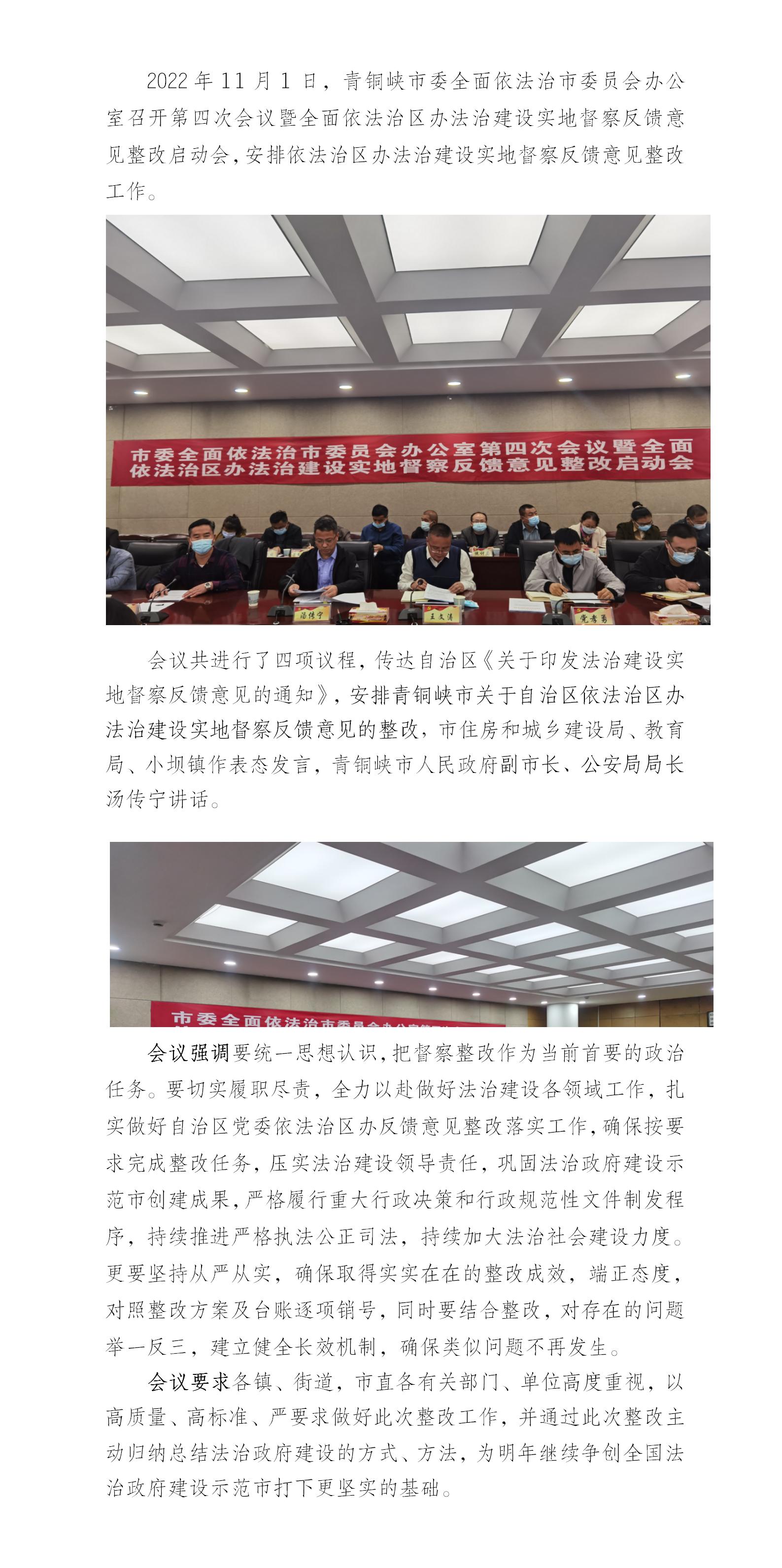 365app最新版安卓下载_365bet资讯_beat365唯一官网委全面依法治市委员会办公室召开第四次会议暨全面依法治区法治建设实地督察反馈意见整改启动会